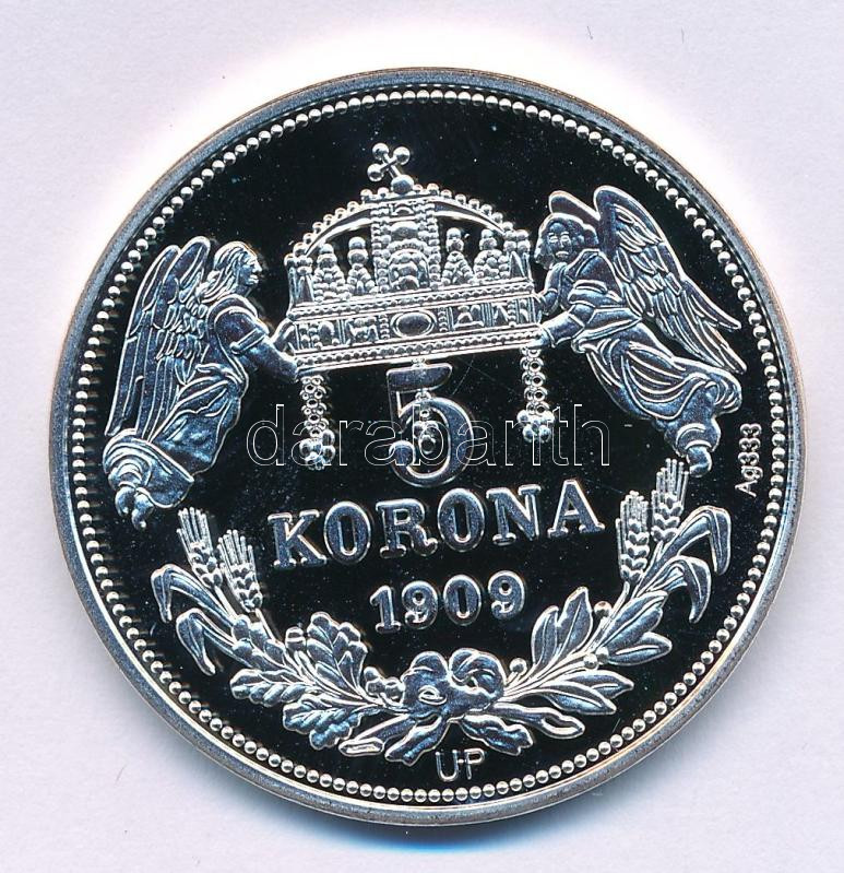 Leírás: DN "Királyi koronák / 1909. 5K - I. Ferdinánd" Ag emlékérem tanúsítvánnyal (20g/0.333/38,61mm) T:PP pici patina