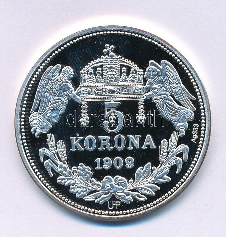 Leírás: DN "Királyi koronák / 1909. 5K - II. Ferdinánd" Ag emlékérem (20g/0.333/38,61mm) T:PP pici patina