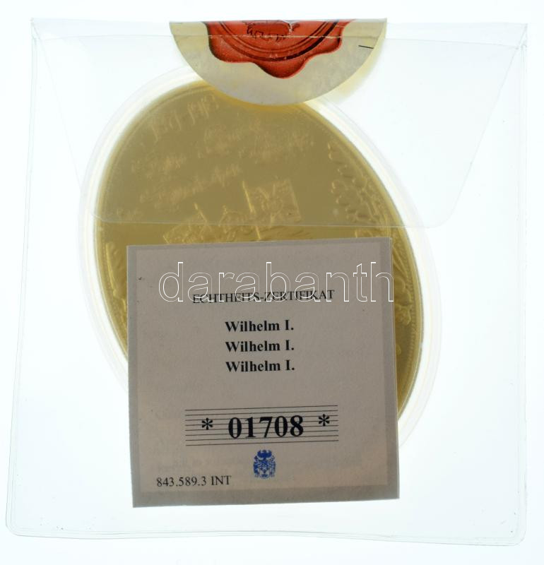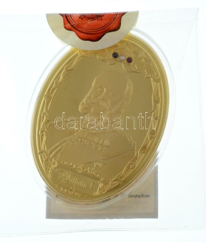 DN "Wilhelm I. / 1871-1918. Die Kaiser des Deutscher Reichs" kétoldalas, aranyozott Cu plakett, Sawrowski kristály berakással, kapszulában, tanúsítvánnyal, bontatlan csomagolásban (85x62mm) T:PP