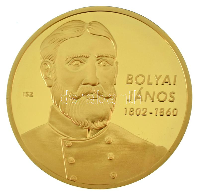 Leírás: ifj. Szlávics László (1959-) 2011. "Nagy Magyarok / Bolyai János" aranyozott Cu emlékérem kapszulában (40mm) T:PP
