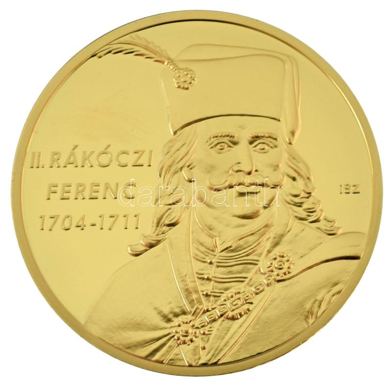 Leírás: ifj. Szlávics László (1959-) 2011. "Nagy Magyarok / II. Rákóczi Ferenc" aranyozott Cu emlékérem kapszulában (40mm) T:PP
