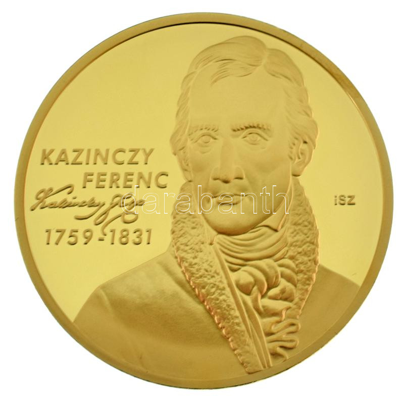 Leírás: ifj. Szlávics László (1959-) 2011. "Nagy Magyarok / Kazinczy Ferenc" aranyozott Cu emlékérem kapszulában (40mm) T:PP
