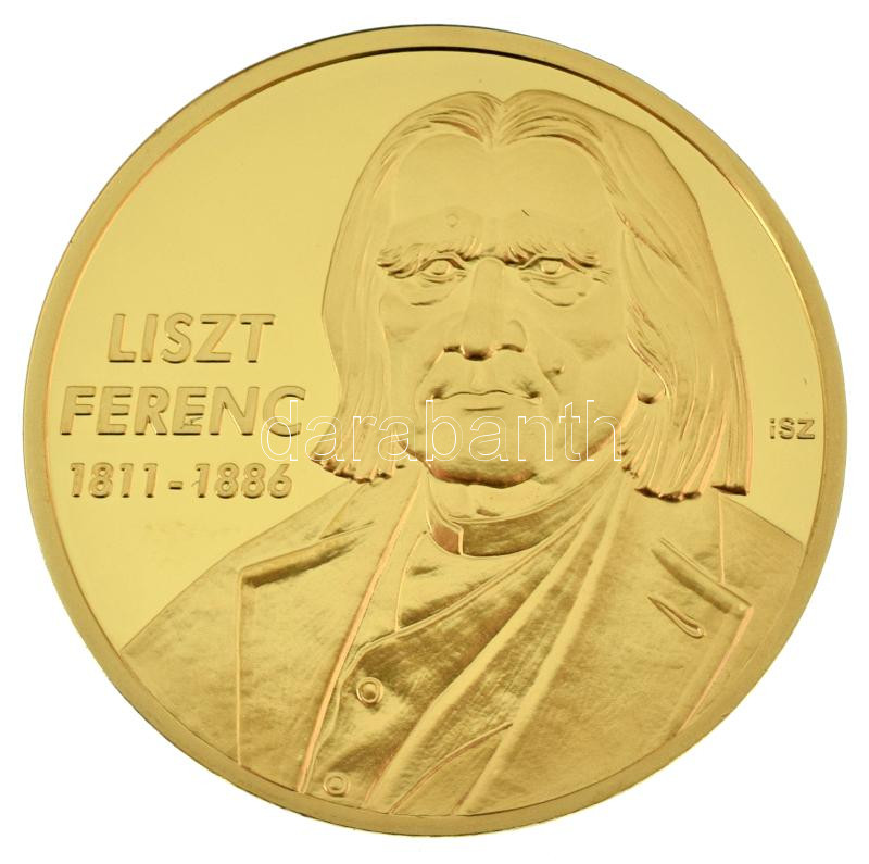 Leírás: ifj. Szlávics László (1959-) 2011. "Nagy Magyarok / Liszt Ferenc" aranyozott Cu emlékérem kapszulában (40mm) T:PP