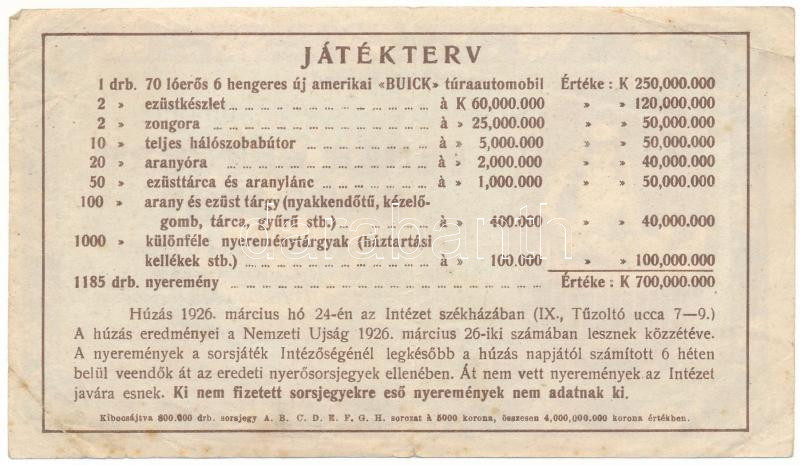 1926. Budapest "Fehér Kereszt sorsjegy" 5000K értékben, a Fehér Kereszt Országos Lelencház Egyesület Gyermekkórháza és Árvaháza javára, "C" sorozat T:F