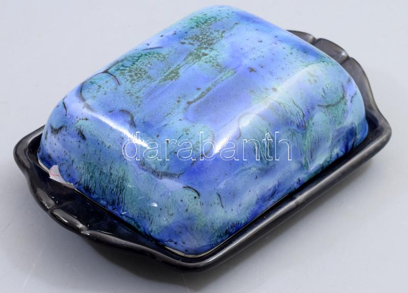 Leírás: Kondor Éva vajtartó, jelzett, lepattanással, h: 19 cm