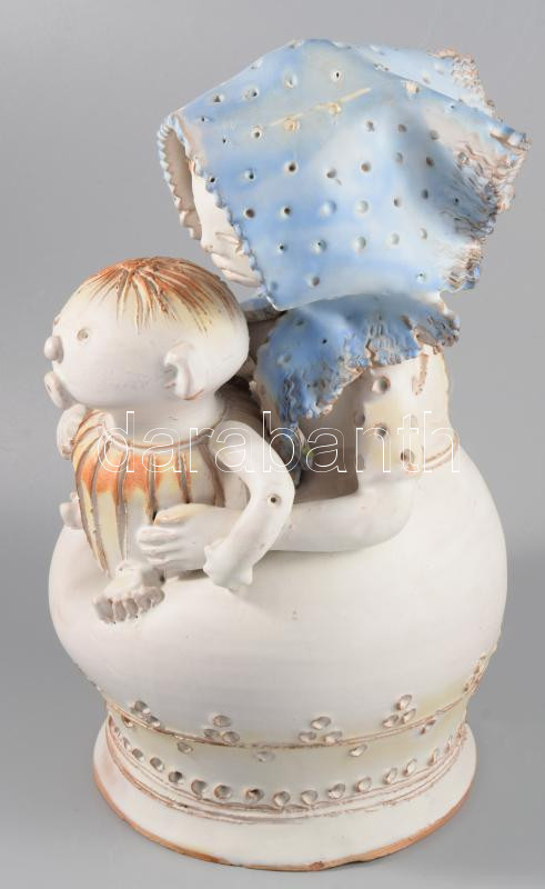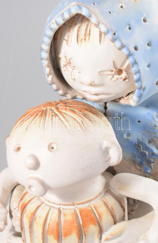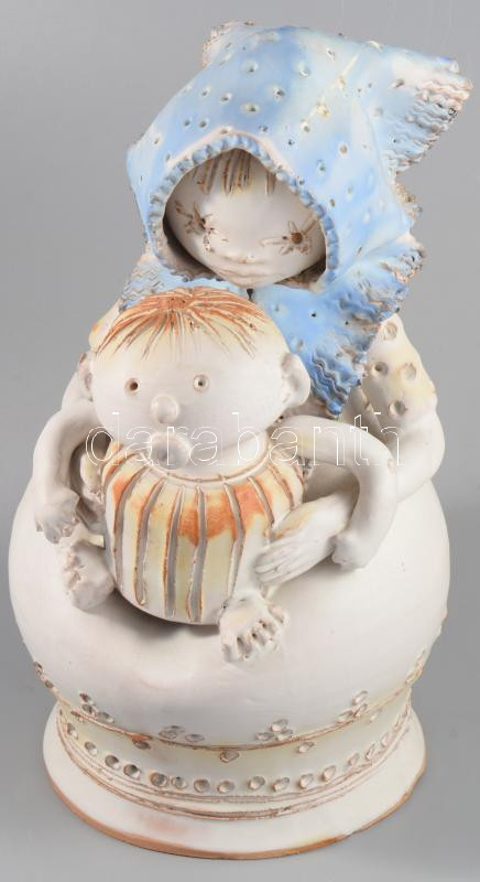 Leírás: Kovács Éva (1938-): Anya gyermekével. Mázas kerámia. Kézzel festett, jelzett, hibátlan 30 cm