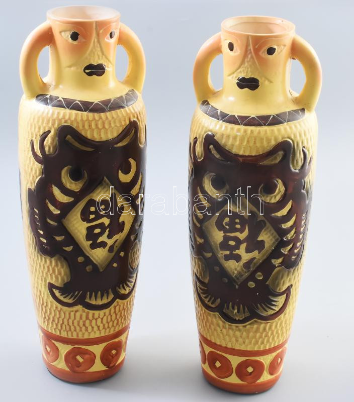 Leírás: Design váza pár, bagoly mintával, kis kopással, m: 34 cm