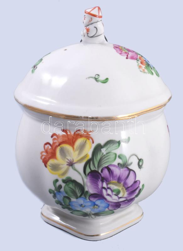 Leírás: Herendi kínai figurás cukordoboz. Kézzel festett, jelzett, hibátlan 17 cm