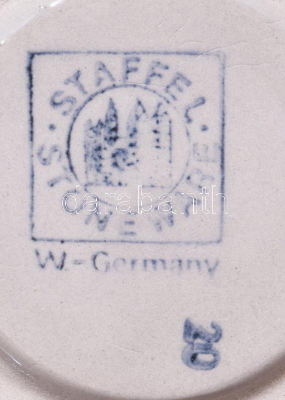 Leírás: Német kőedény söröskorsó, jelzett, hibátlan, m: 14 cm