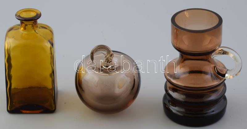 Leírás: 3 db Design üveg, formába fújt, anyagában színezett, hibátlan m: 9-13 cm