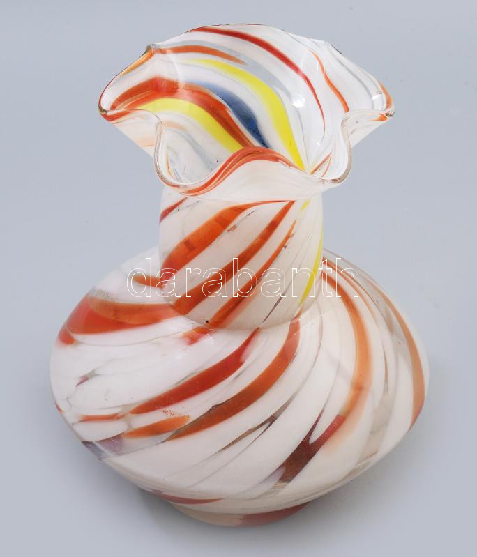 Leírás: Anyagában örvényesen színezett váza, jelzés nélkül, hibátlan, m: 18 cm
