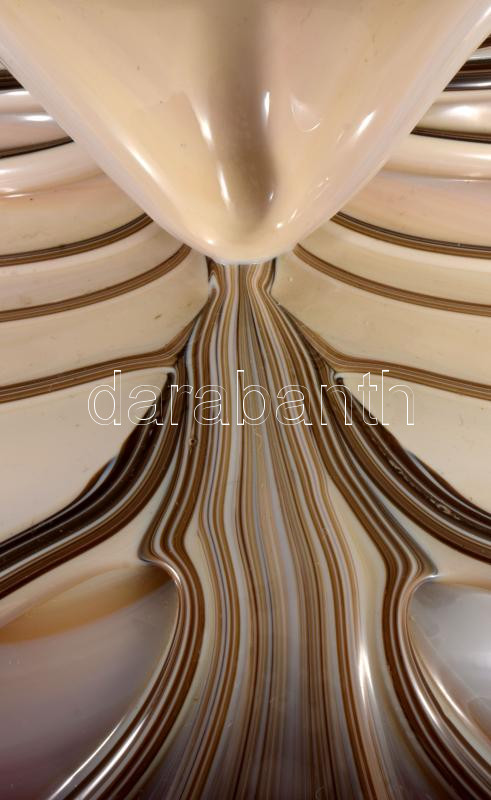 Leírás: Bohemia üveg váza. Formába öntött, anyagában színezett, többrétegű, üvegszál rátétes. Hibátalan m: 17 cm /