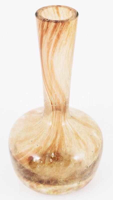 Leírás: Buborékos anyagú. barnán fátyolosan színezett váza, jelzés nélkül, hibátlan, m: 29 cm