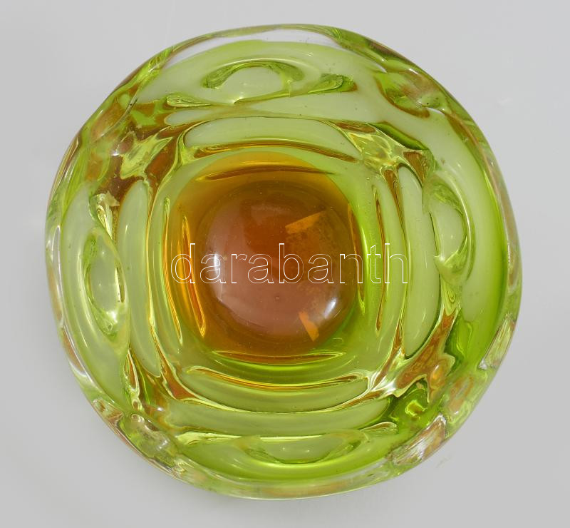 Leírás: Chribska cseh anyagában színezett asztaldísz, cca 1970, jelzés nélkül, minimális karcokkal, d: 11,5 cm, m: 6,5 cm