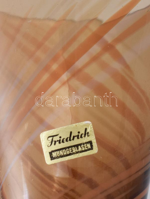 Friedrich német üveg váza formába öntött, , anyagában színezett, hibát... https://www.darabanth.com/hu/514-Filatelia-kepeslap-numizmatika-mutargy-konyv-papirregiseg-ekszer-aukcio/515.0/Porcelan-keramia-uveg/Uvegtargyak~573/Friedrich-nemet-uveg-vaza-formaba-ontott-anyagaban-szinezett-hibatlan-jelzett-22-cm~II3169588