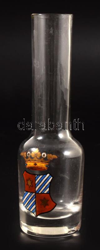 Leírás: J. & L. Lobmeyr címermintás snapszos pohár. cca 1960, Bécs, zománcfestett címermintával díszített, jelzés nélkül, kis kopással, m: 12,5 cm