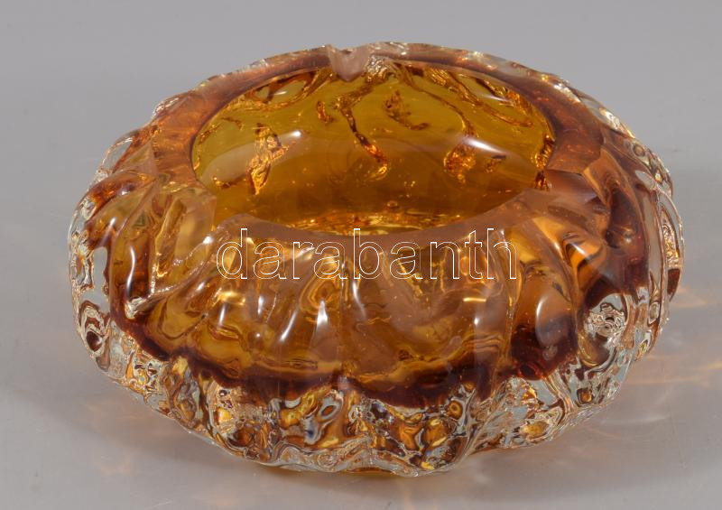 Leírás: Jegecüveg hamuzó, pattanással, d: 12 cm