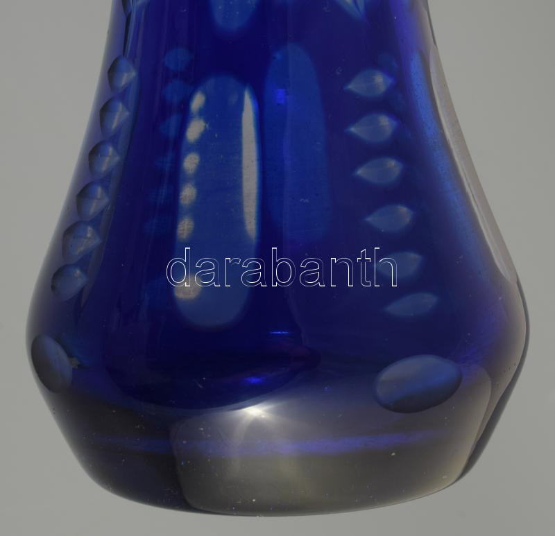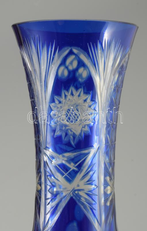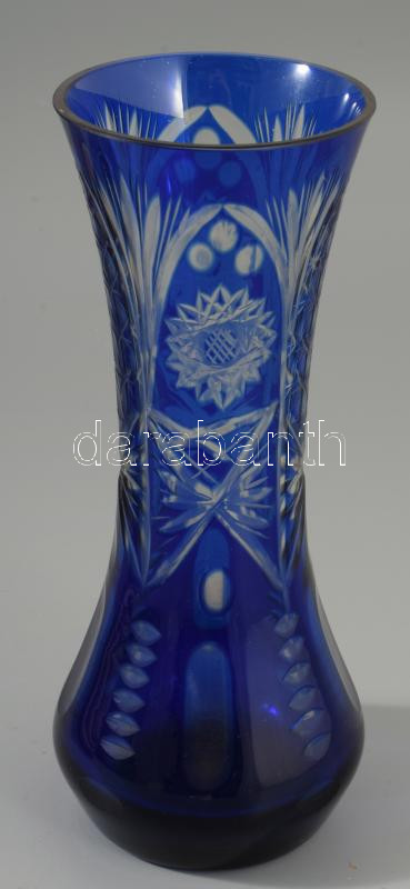 Leírás: Kéken pácolt kristály váza, m: 20,5 cm