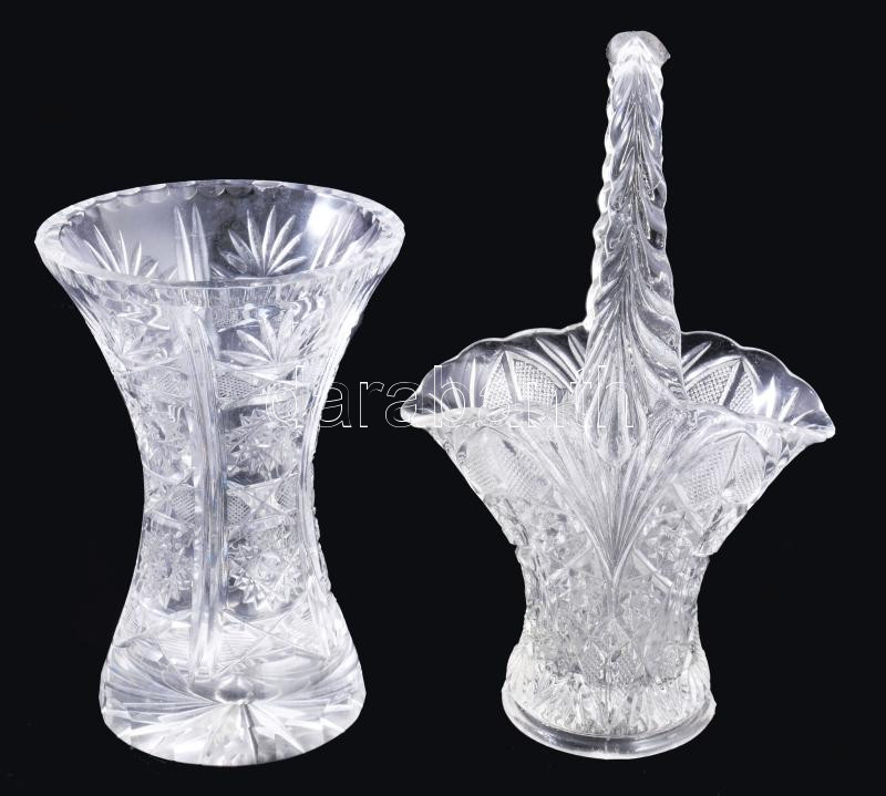 Leírás: Kristály váza és kosár alakú kínáló, m: 15-21 cm