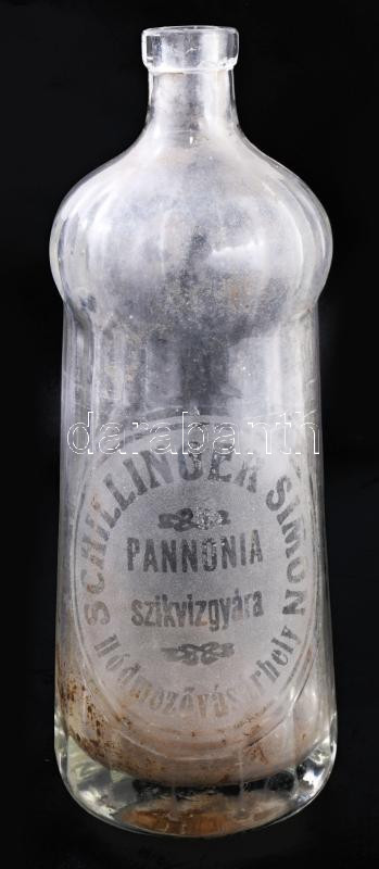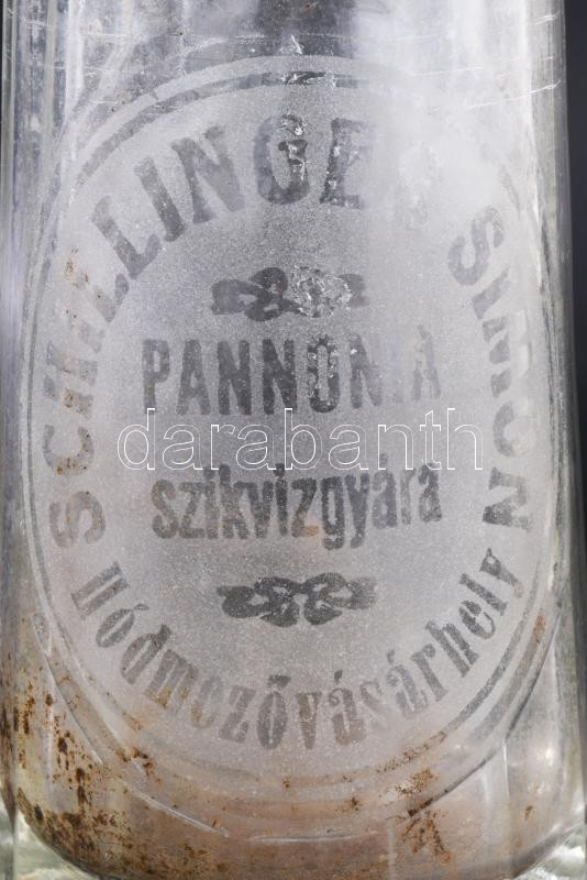 Leírás: Schillinger Simon Hódmezővásárhely Pannóni szikvízgyár feliratos szódás üveg fej nélkül 24 cm