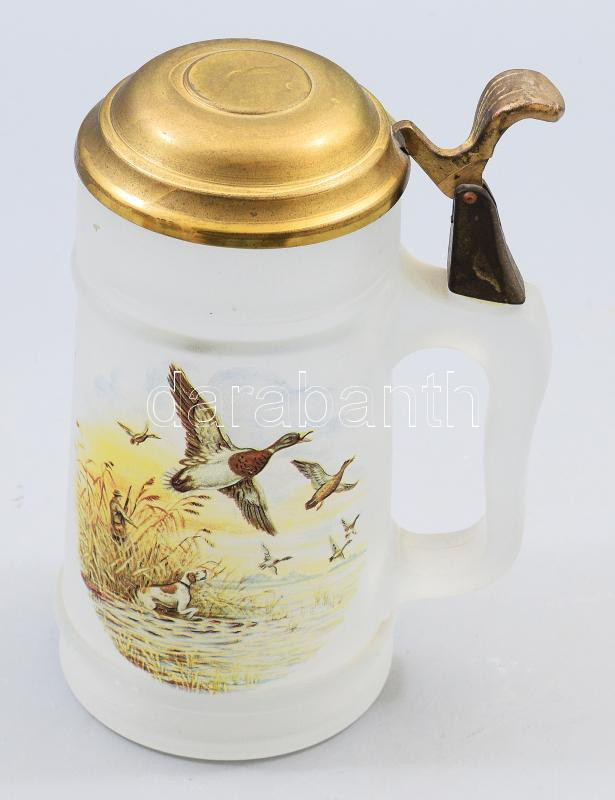 Leírás: Vadászmintás fedeles söröskorsó, m: 17 cm