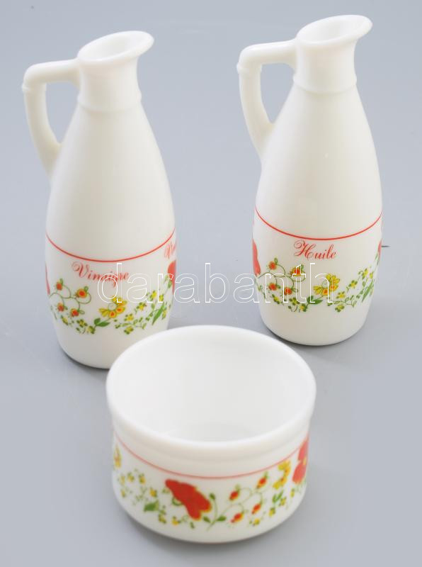 Leírás: Vintage tejüveg 3 részes szervírozó szett, jelzett, m: 17 cm alatt