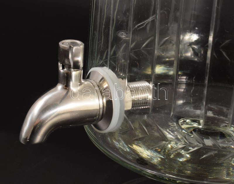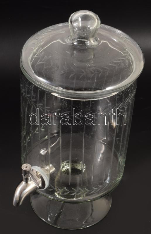 Leírás: cca 1900 Csiszolt üveg talpas forraltboros / italos csapos edény, új szerelékkel, hibátlan, m: 32 cm
