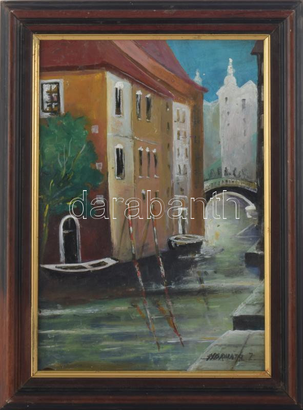 Leírás: Horváth Zoltán (1945-) Velencei látkép. Olaj, farost. 29x20 cm Keretben