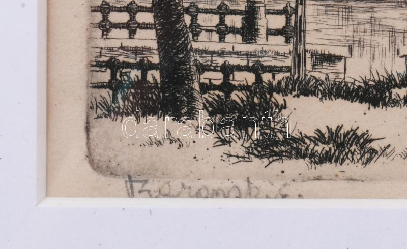 Leírás: Baranszky Emil László (1877-1941): A Széchenyi-híd (Lánchíd). Rézkarc, papír, jelzett, üvegezett fakeretben, 8×11,5 cm
