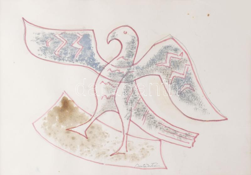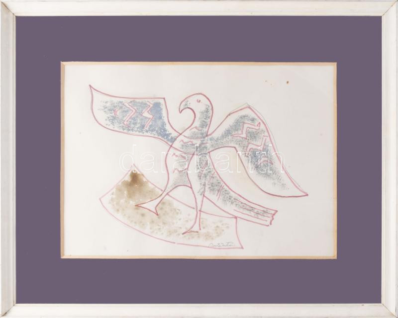 Leírás: Barta István (1892-1976): Madár. Vegyes technika, papír, jelzett, üvegezett fakeretben. Néhány kevés apró folttal. 27x38,5 cm
