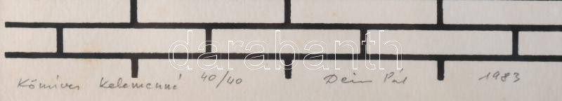 Leírás: Deim Pál (1932-2016): Kőmíves Kelemenné, 1983. Szitanyomat, papír, jelzett. Számozott (40/40). Üvegezett fakeretben, 72×51 cm.