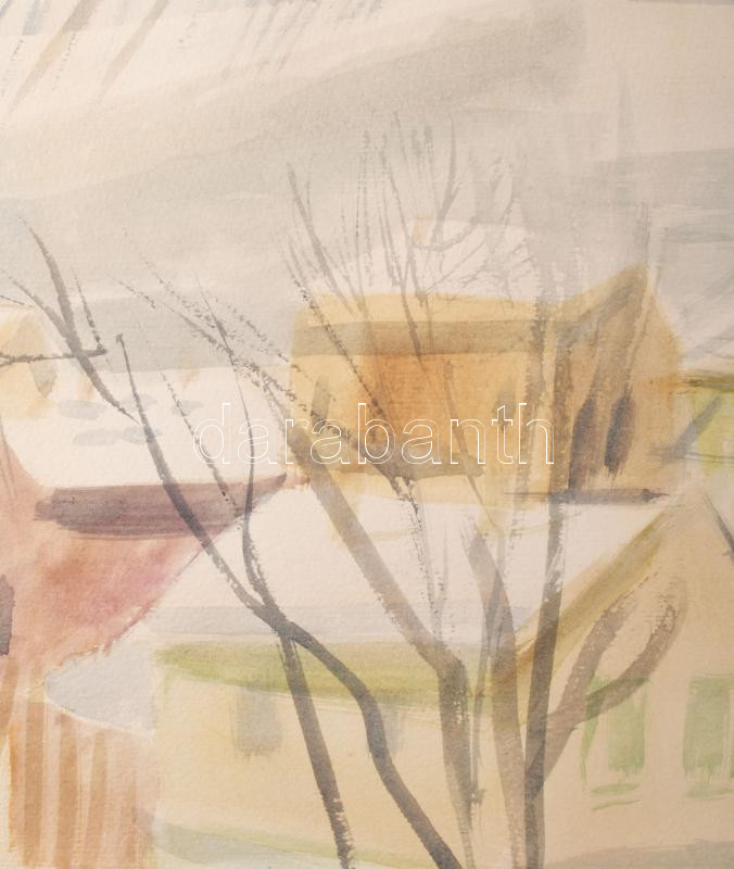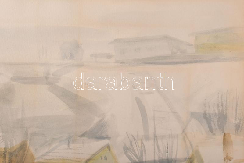 Leírás: Göldner Tibor (1929-2013): Ködös téli Sugovica (Baja), 1983. Akvarell, papír, jelzett. Hátoldalán autográf felirattal. Paszpartuban. 33,5×48 cm