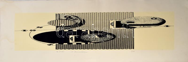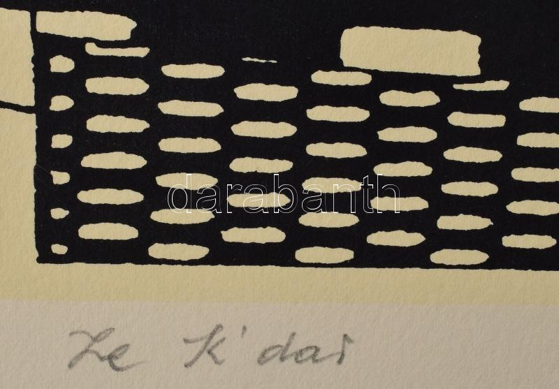 Leírás: Joseph Kádár (1936-2019): "L'Horizontalisme". Szitanyomat, papír, jelzett. 8/100 számozással. Ázásnyommal, hajtásnyommal. 21x85 cm