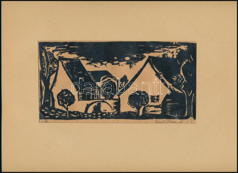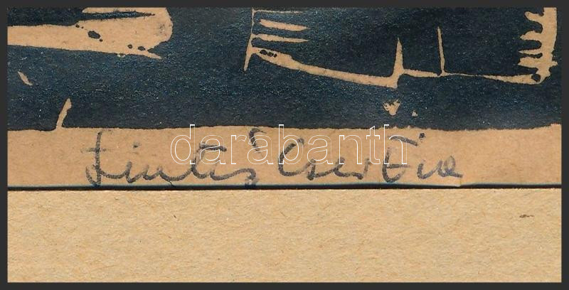 Leírás: Lisztes Cser Éva (-): Kecskeméti részlet, 1976. Linómetszet, papír, jelzett, paszpartuban, 10×19,5 cm
