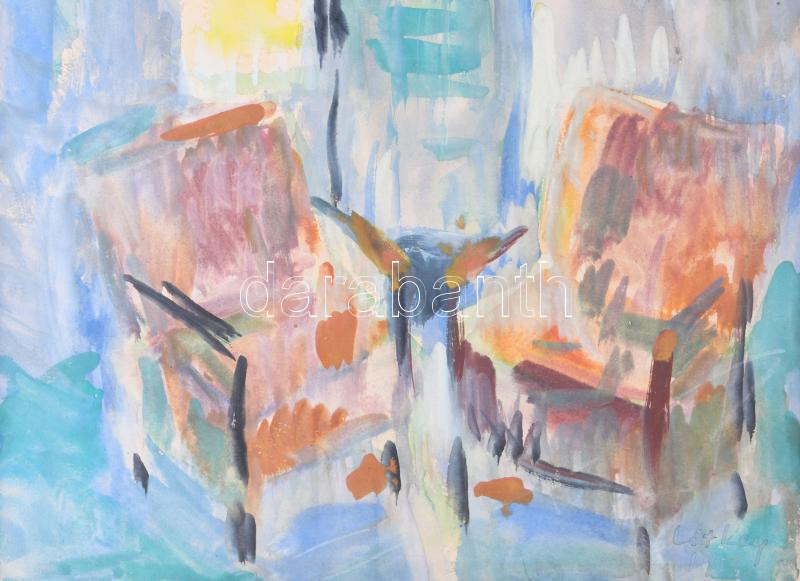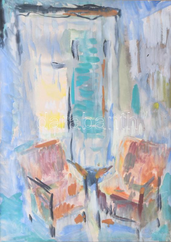 Leírás: Litkey György (1907-1975): Enteriőr, 1959. Akvarell, papír. Jelezve jobbra lent. 34x24,5 cm. Fakeretben.