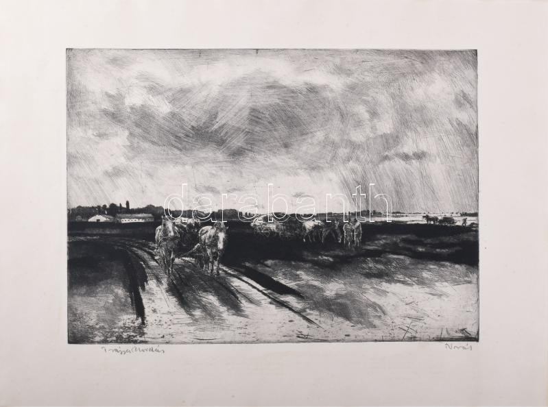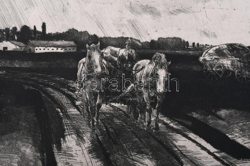 Leírás: Novák Lajos (1927-1989): Őszi munkák (Trágyahordás). Rézkarc, papír, jelzett. 30x38 cm