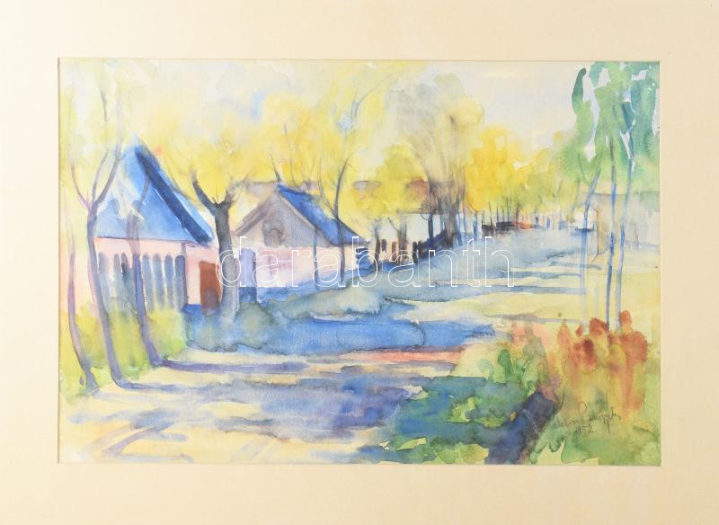 Leírás: Prokop Péter (1919-2003): Kalocsai utca, 1952. Akvarell, papír, jelezve jobbra lent, paszpartuban. 32,5×48 cm