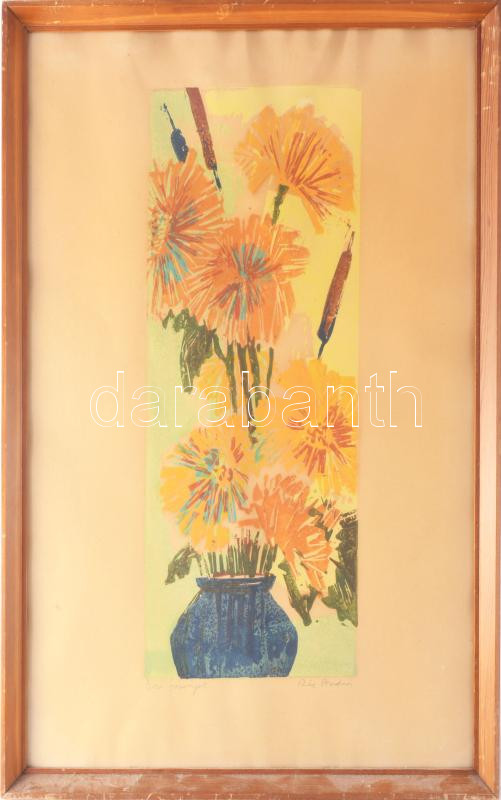 Rác András (1926-2013): Őszi virágok. Színes linómetszet, papír, jelze... https://www.darabanth.com/hu/515-Festmeny-grafika-plakat-ex-libris-arveres/517.0/Festmenyek-es-grafikak/Festmenyek-es-grafikak~16/Rac-Andras-1926-2013-Oszi-viragok-Szines-linometszet-papir-jelzett-uvegezett-fakeretb~II3474207