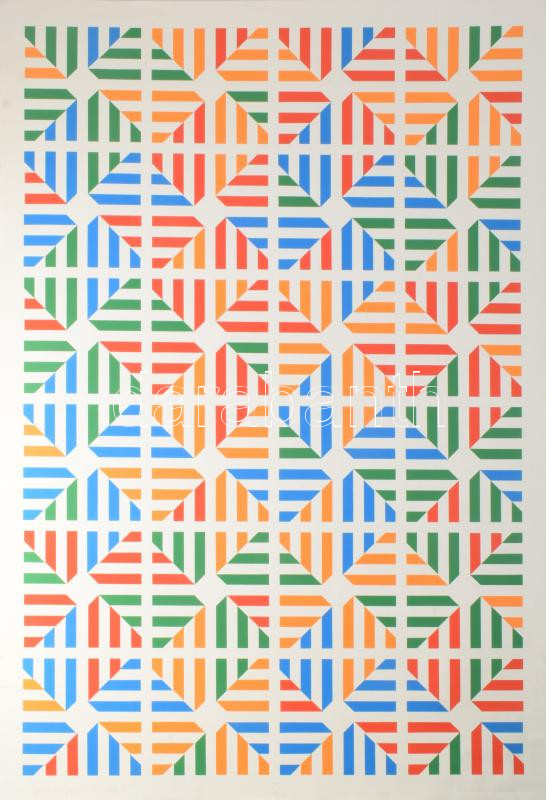 Leírás: Rákóczy Gizella (1947-2015): Geometrikus kompozíció (cím nélkül), 1982. Szitanyomat, papír. Jelzett. Számozott (5/120). Lapszéli egészen apró sérüléssel és apró elszíneződésekkel. 71x47 cm
