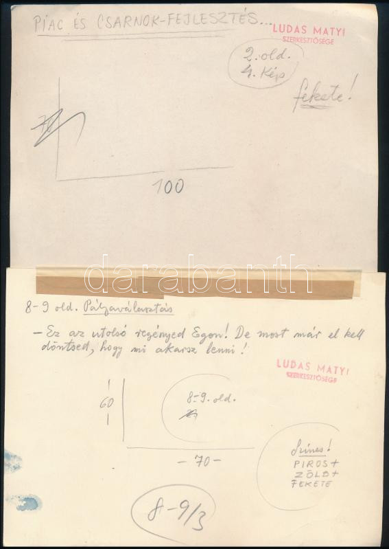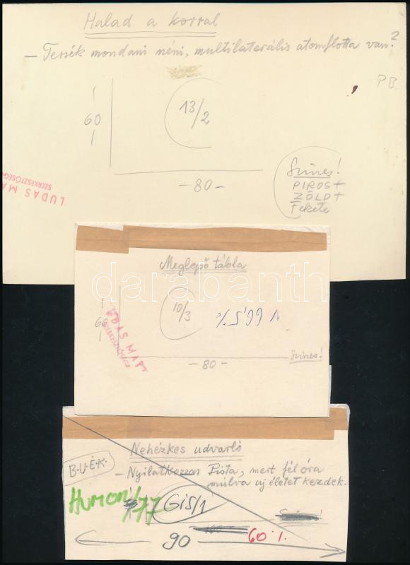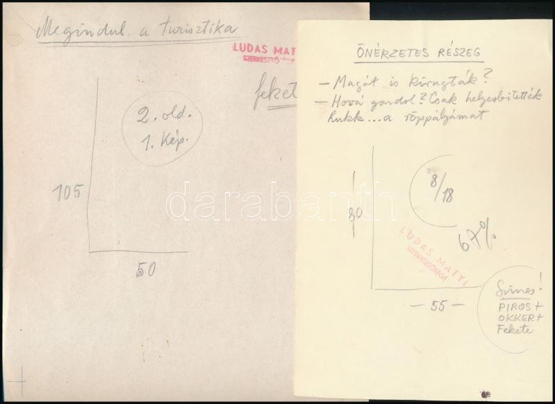 Leírás: Szegő Gizi (1902-1985): 10 db karikatúra. Vegyes technika, papír, jelzett,egy kivételével mindegyik hátoldalán "Ludas Matyi Szerkesztősége" vagy "Kis Ludas" bélyegzővel. 14x19 és 20x22 cm körüli méretekben