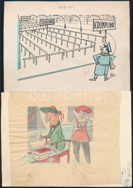 Szegő Gizi (1902-1985): 10 db karikatúra. Vegyes technika, papír, jelz... https://www.darabanth.com/hu/515-Festmeny-grafika-plakat-ex-libris-arveres/517.0/Festmenyek-es-grafikak/Festmenyek-es-grafikak~16/Szego-Gizi-1902-1985-10-db-karikatura-Vegyes-technika-papir-jelzett-egy-kivetelevel-minde~II3479169