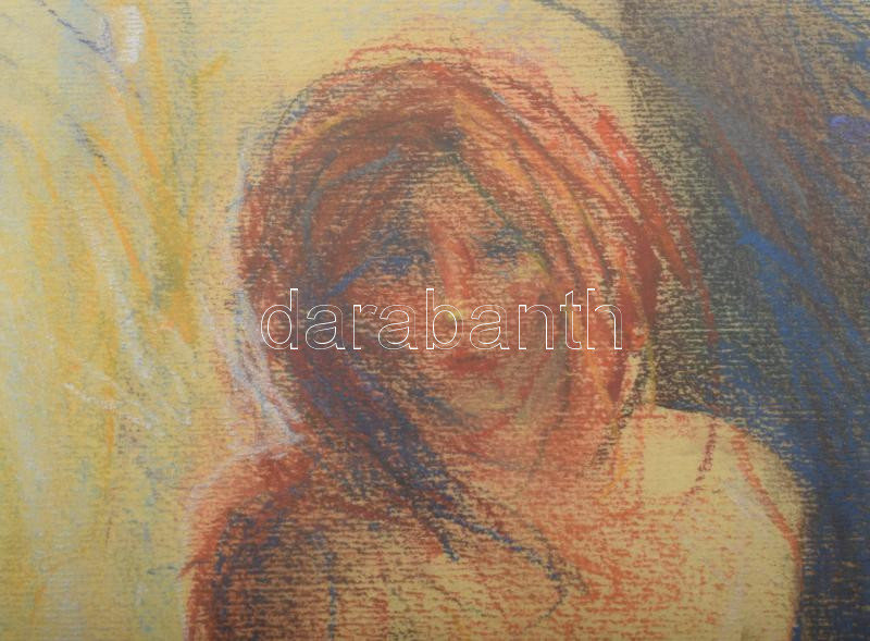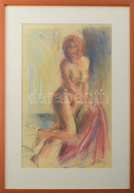 Leírás: Szirányi István (1951-): Női akt. Pasztell, papír, jelzett, üvegezett fakeretben. 41x26 cm.