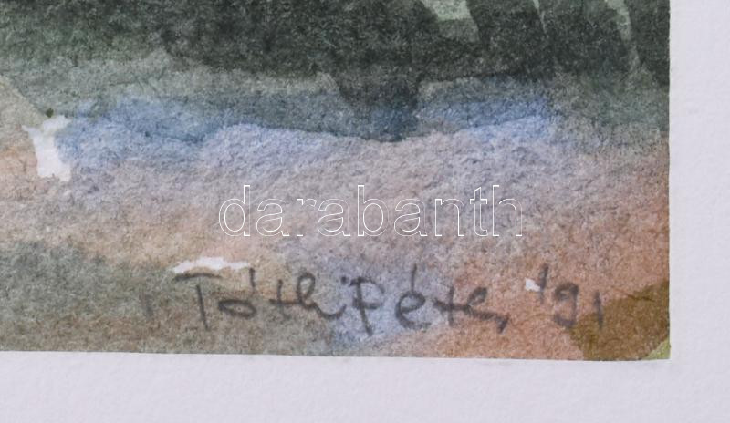 Leírás: Tóth Péter (-): Vízparti táj (Dunakanyar?). Akvarell, papír. Paszpartuban. 15x19 cm