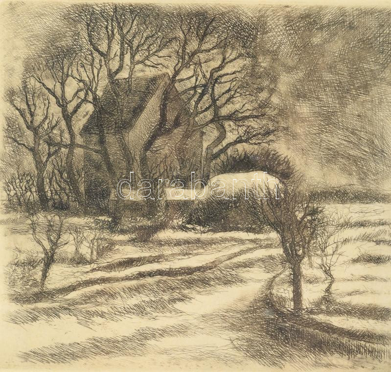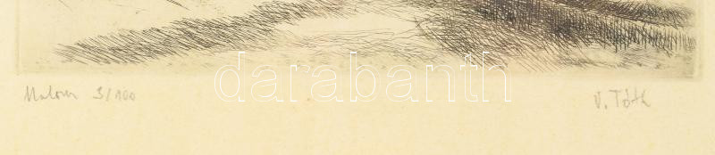 Leírás: V. Tóth László (1930-2001): Malom. Rézkarc, papír. Jelzett. Számozott (3/100). Üvegezett fakeretben. 19x21 cm