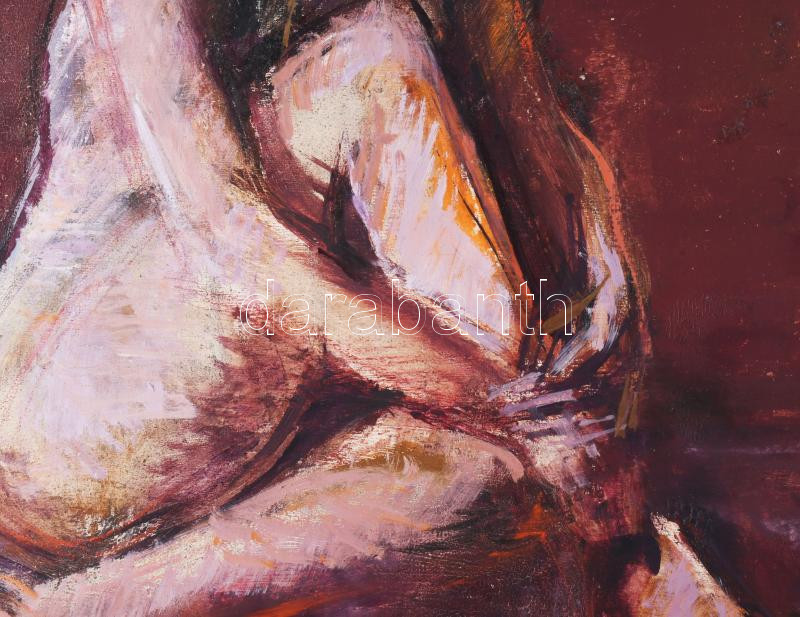Leírás: Wagner János (1936-2022): Női akt. Olaj, farost, jelezve jobbra lent. Hátoldalán autográf felirattal. Dekoratív, éleinél kissé sérült fakeretben. 50×50 cm
