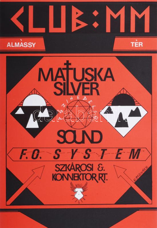 Bernáthy Sándor (1949-2012), Ocztos István (1962-2023): Matuska Silver Sound, F. O. System, Szkárosi & Konnektor Rt, Club: MM, Almássy tér, Bp, 1988. Underground-alternatív plakát, papír, jelzett a plakáton, 47,5x21 cm.