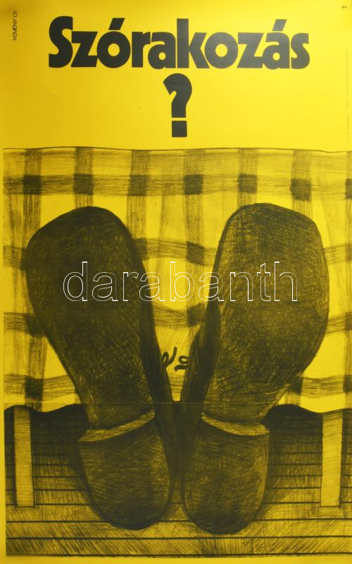 Leírás: Kemény György (1936-): Szórakozás?, 1971. Plakát, ofszet, papír, jelzett a plakáton, Zrínyi Nyomda, 83,5x57 cm. Feltekerve.