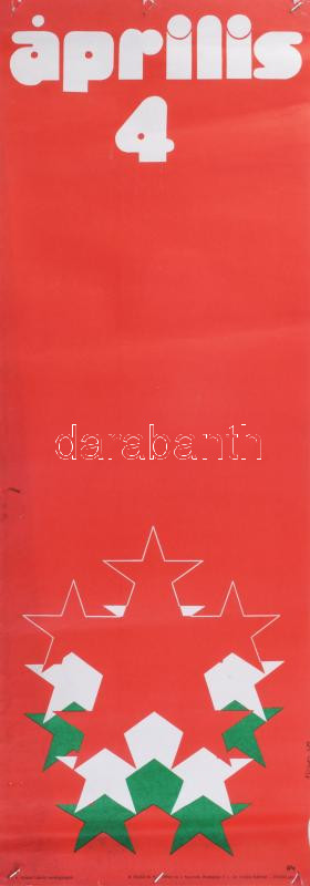 cca 1978-79 Április 4 felszabadulás ünnepe, 4 db retro szocialista plakát, egyik Sós László - Kemény Éva (So-Ky) által tervezett, ofszet, papír, feltekerve, hajtásnyomokkal, tetején és alján fára rögzítve, foltos, részben kissé sérült, 68x23,5 és 68x48 cm körüli méretekben