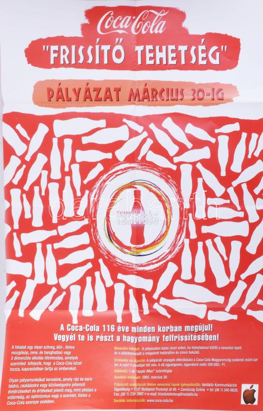 cca 2001-2002 Coca-Cola "Frissítő tehetség" pályázat plakát,... https://www.darabanth.com/hu/515-Festmeny-grafika-plakat-ex-libris-arveres/517.0/Festmenyek-es-grafikak/Plakat~15/cca-2001-2002-Coca-Cola-Frissito-tehetseg-palyazat-plakat-papir-Hajtasnyomokkal-95x68-cm~II3481386