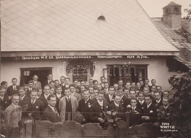 1927 Országos M. F. SZ. Diákkongresszusa, Rimaszombat, 1927. IX./16., ... https://www.darabanth.com/hu/515-Filatelia-kepeslap-numizmatika-mutargy-konyv-papirregiseg-ekszer-aukcio/518.0/Fotomuveszet/Foto~1061/1927-Orszagos-M-F-SZ-Diakkongresszusa-Rimaszombat-1927-IX16-foto-kartonon-Foto-Winter~II3491254